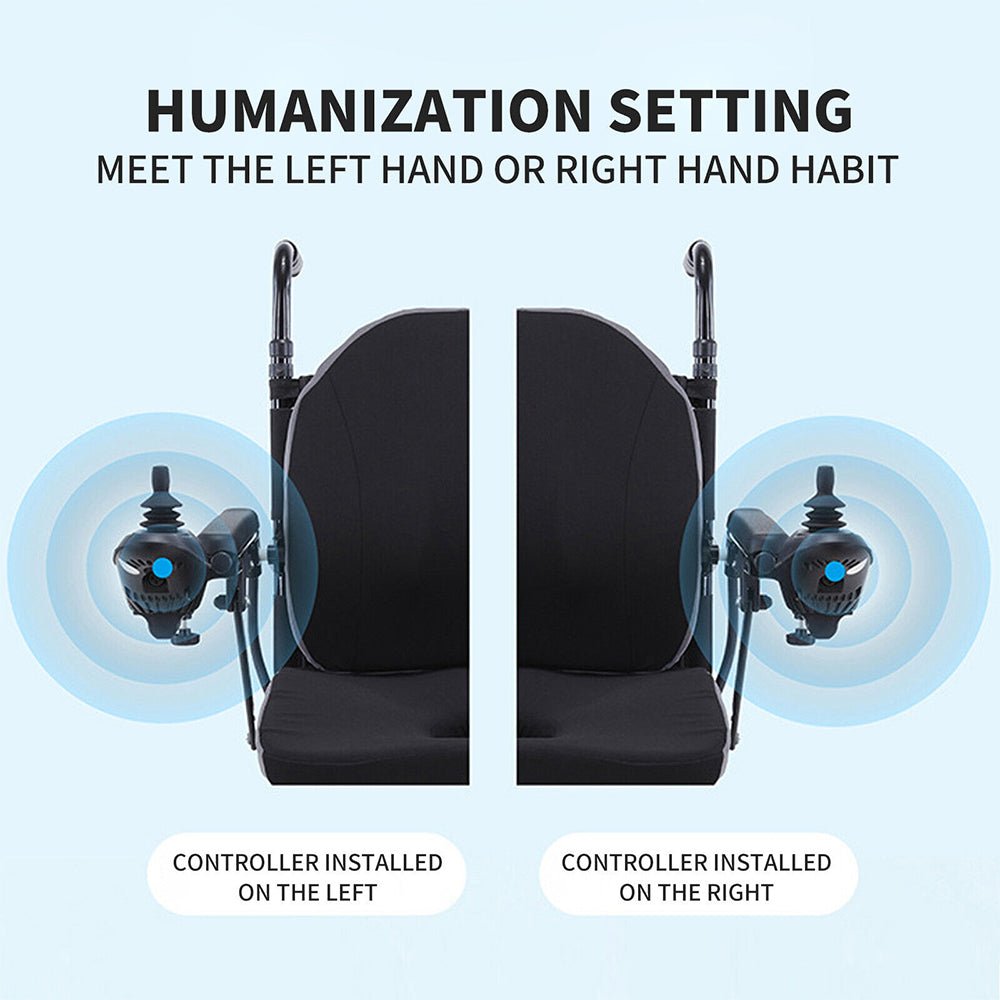 - The lightweight folding wheelchair features an universal 360 degress joystick controller that is extremely easy to control and use.