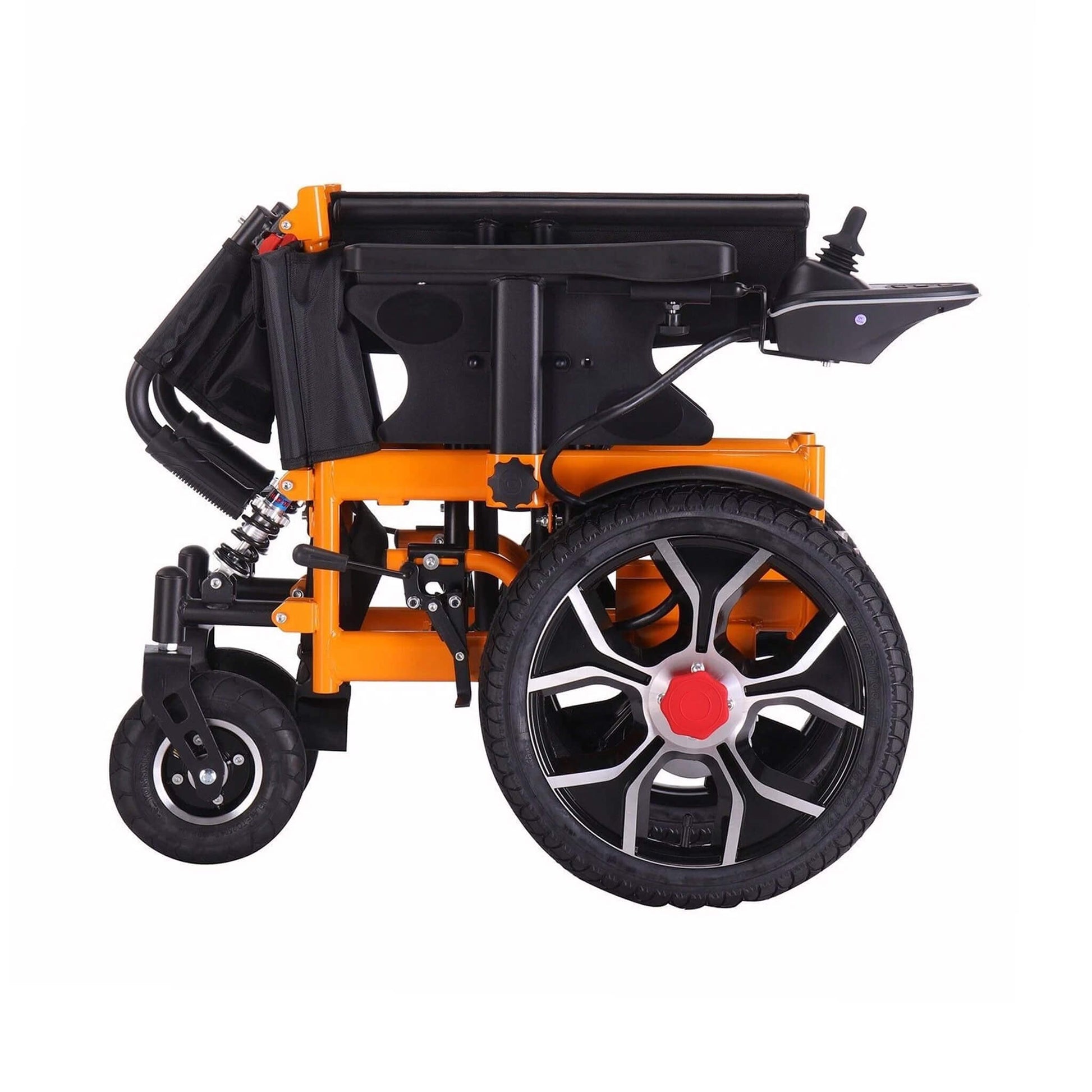 - Featuring an intelligent electromagnetic braking system, this lightweight and foldable electric wheelchair stops instantly when you release the joystick, providing a safe and reliable experience without any sliding or unexpected movement.