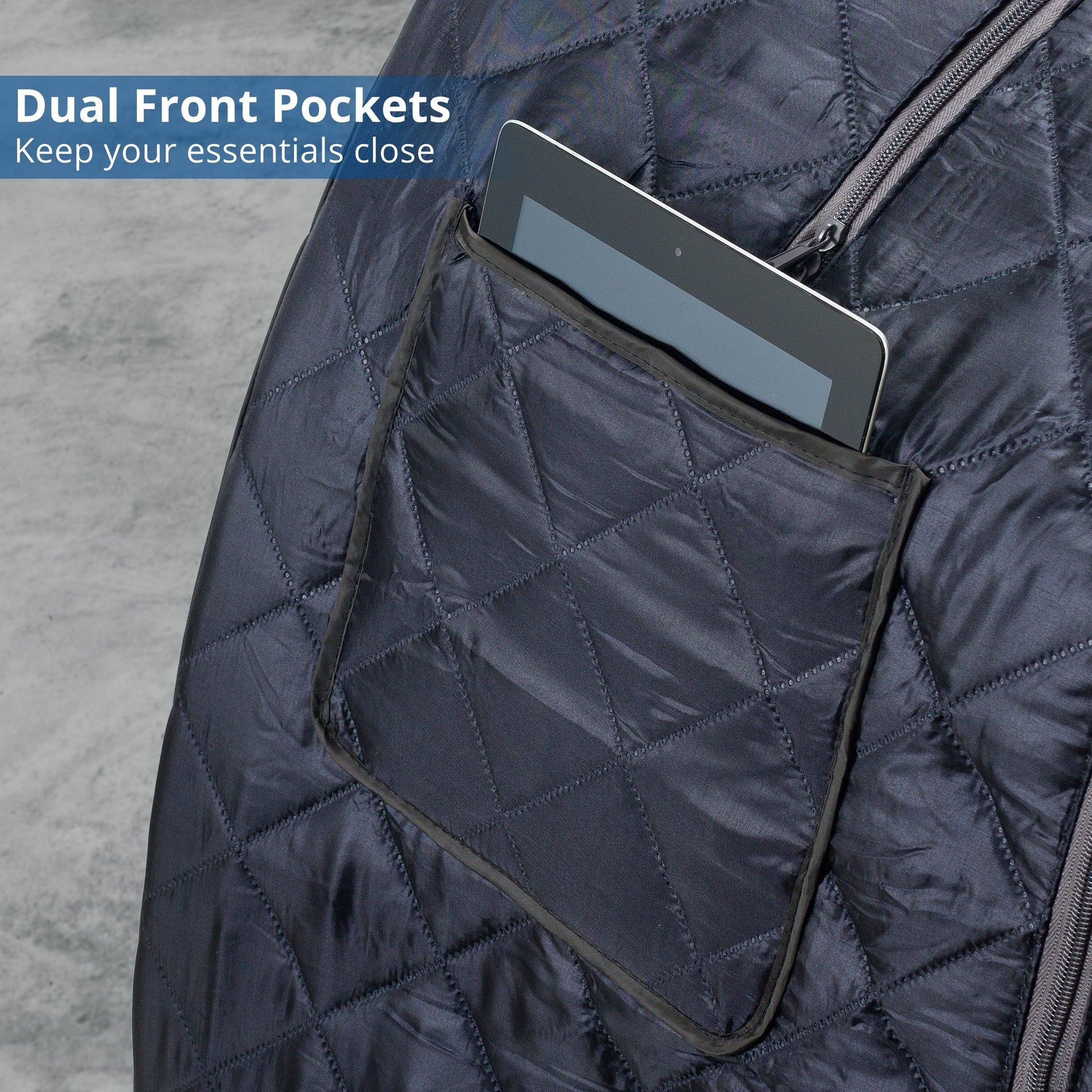 - DUAL POCKETS: Allows you to keep your necessities near by and easy to access while inside the sauna. Check your smartphone notifications, read a book or change the channel on the TV.