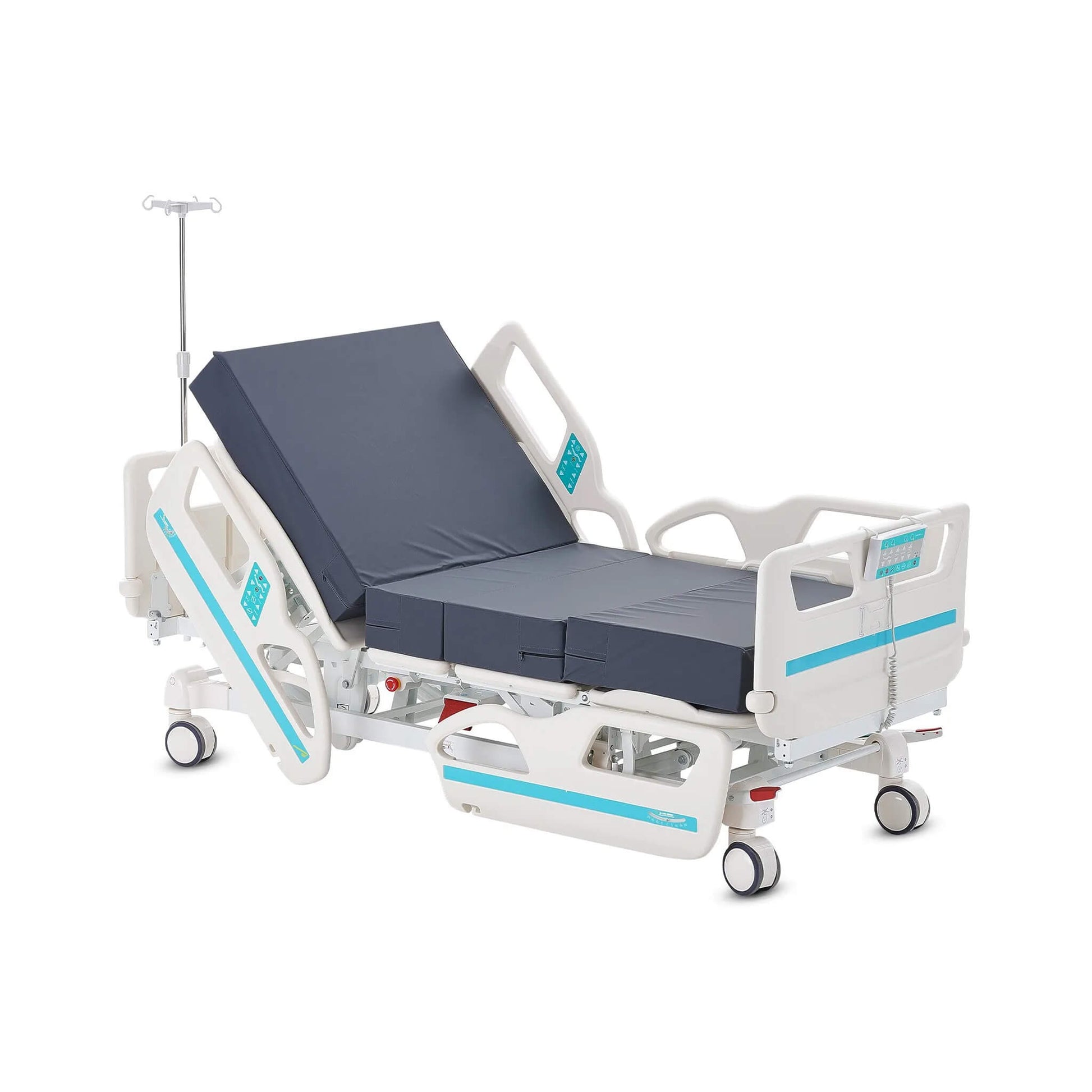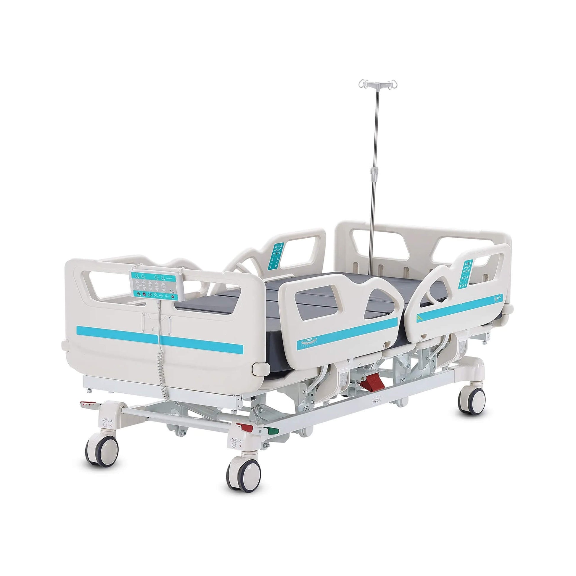 No detail has been overlooked when it comes to comfort. This bed comes complete with a 15cm waterproof memory foam mattress that combines optimal support with spill resistance, ensuring patient hygiene and ease of maintenance. It’s equipped with an IV pole, adding versatility for medical needs, whether it’s in hospitals, rehabilitation centers, or home care environments. The 5-Function Electric Adjustable Medical Hospital Bed is more than just a bed; it’s a complete solution that adapts to your needs, helping improve recovery, comfort, and care at every step.