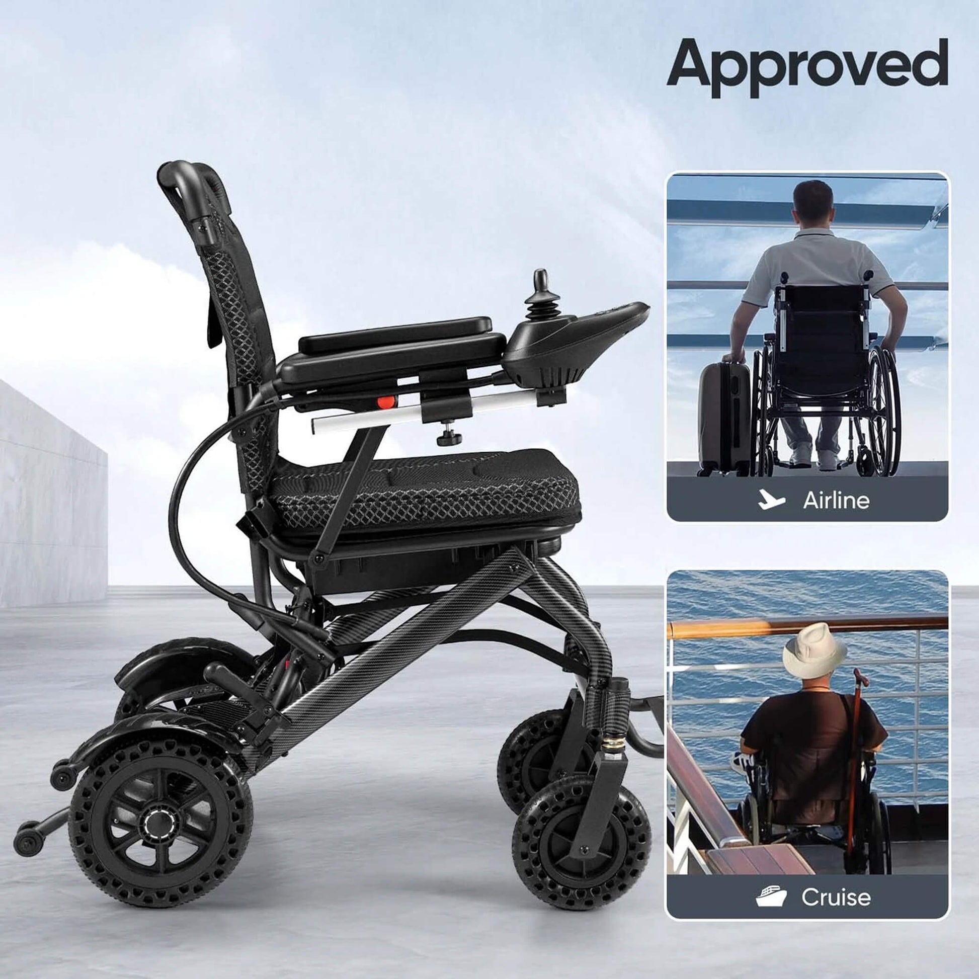 One of the standout features is its impressive travel range. Equipped with a high-performance 6Ah lithium battery, you can journey up to 25 miles on a single charge. This means fewer interruptions and more time enjoying your day, whether you're running errands, visiting friends, or exploring new places. Plus, its airline-approved design makes traveling a breeze. When it’s time to go, the chair folds down into a compact size, making it easy to store in a car trunk or take on a plane.