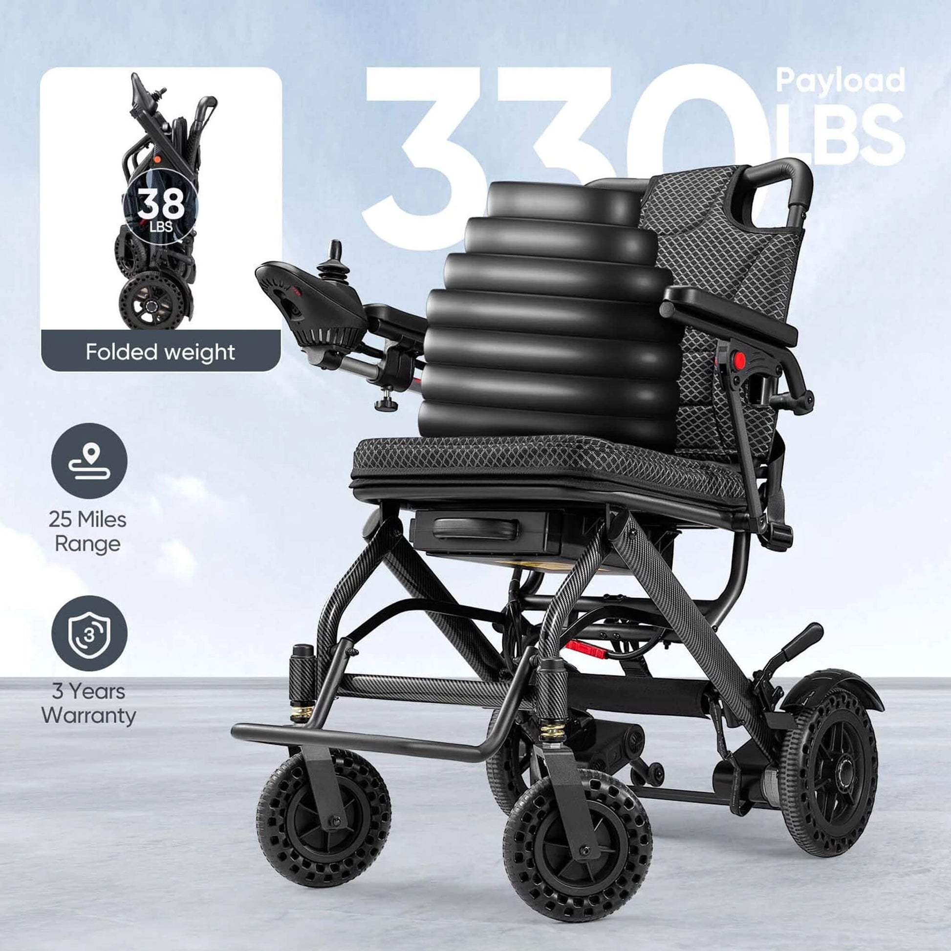- This lightweight and foldable power wheelchair is compact and portable, making it ideal for travel and transportation while prioritizing easy usability for users.