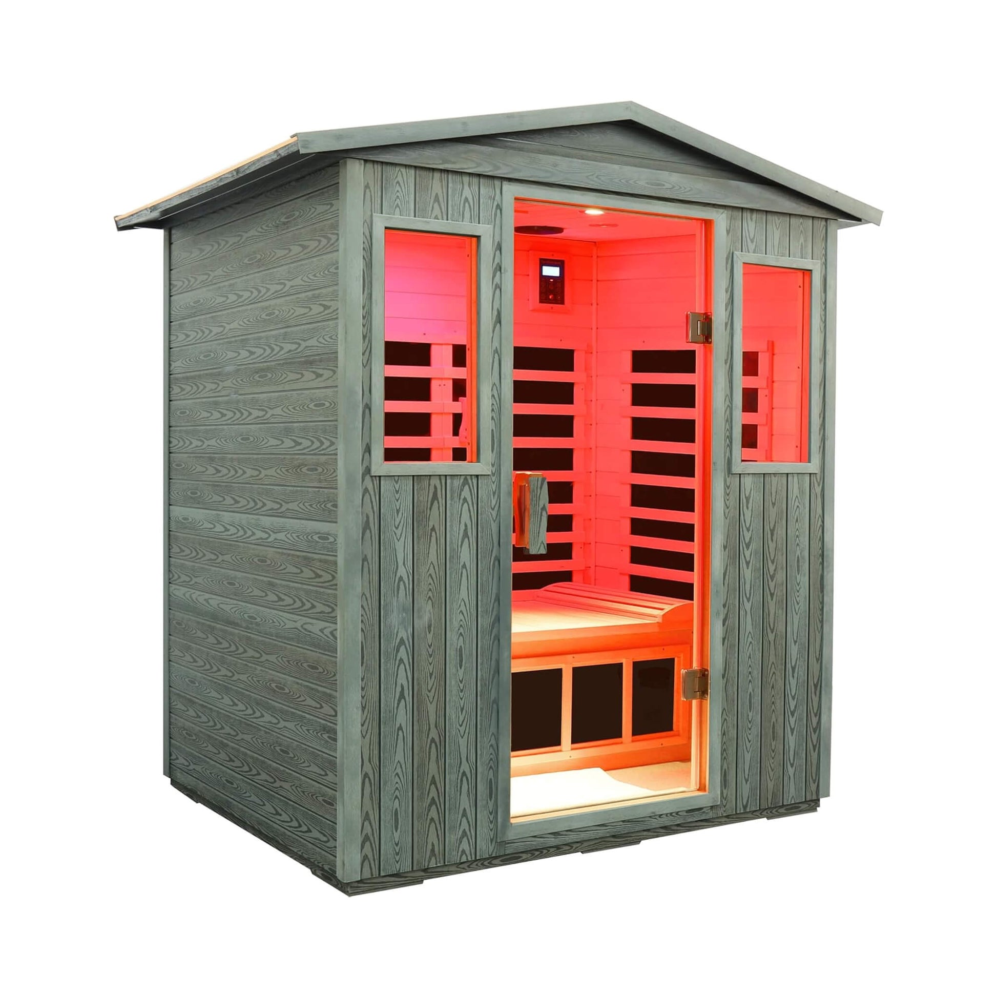 - The sauna is constructed with high-quality aspen wood, which is not only durable and visually appealing but also resistant to rotting and cracking, ensuring long-lasting performance. The innovative umbrella-style roof enhances drainage for rain and snow while improving resilience against various weather conditions, whether it's extreme heat or freezing cold.