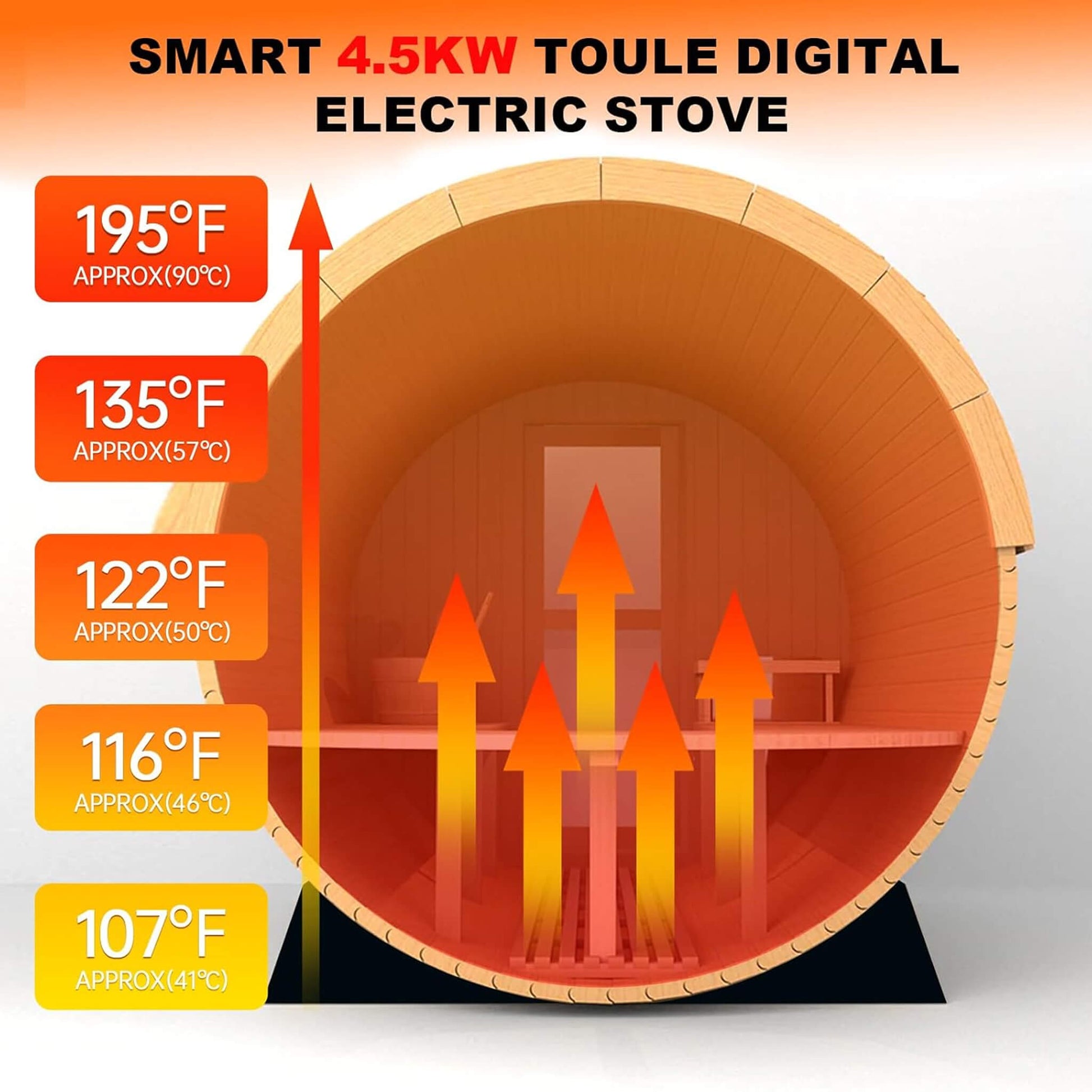 - Is equipped a strong 4.5KW Toule stove that heats the space quickly and keeps it warm, providing a refreshing and energizing sauna experience.